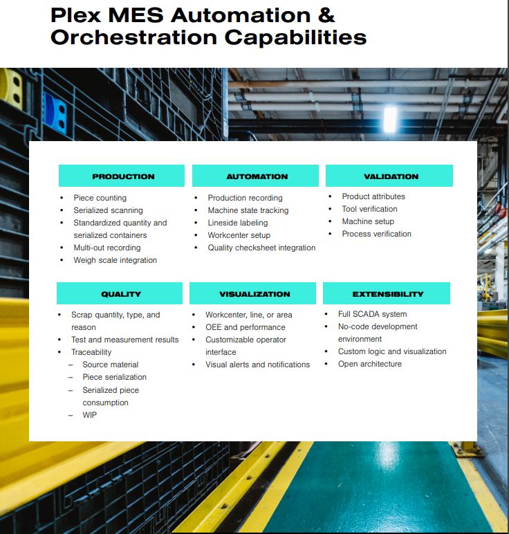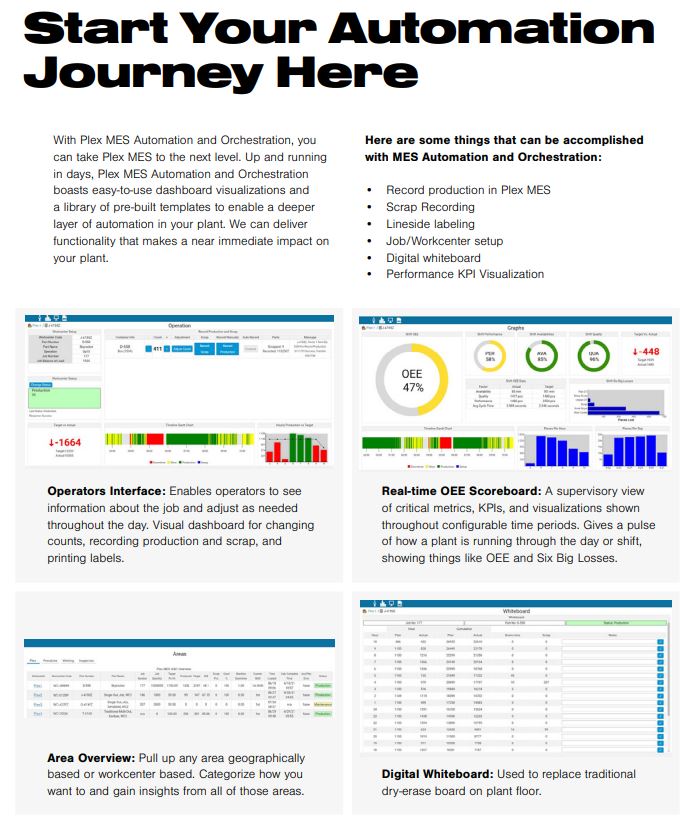 of record. Additionally, Plex MES Automation and Orchestration adds helpful visualizations to