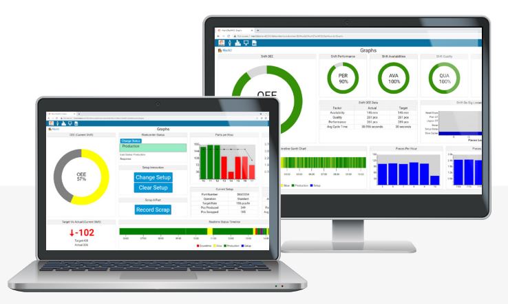 • Production visualization that improves downtime, OEE performance,